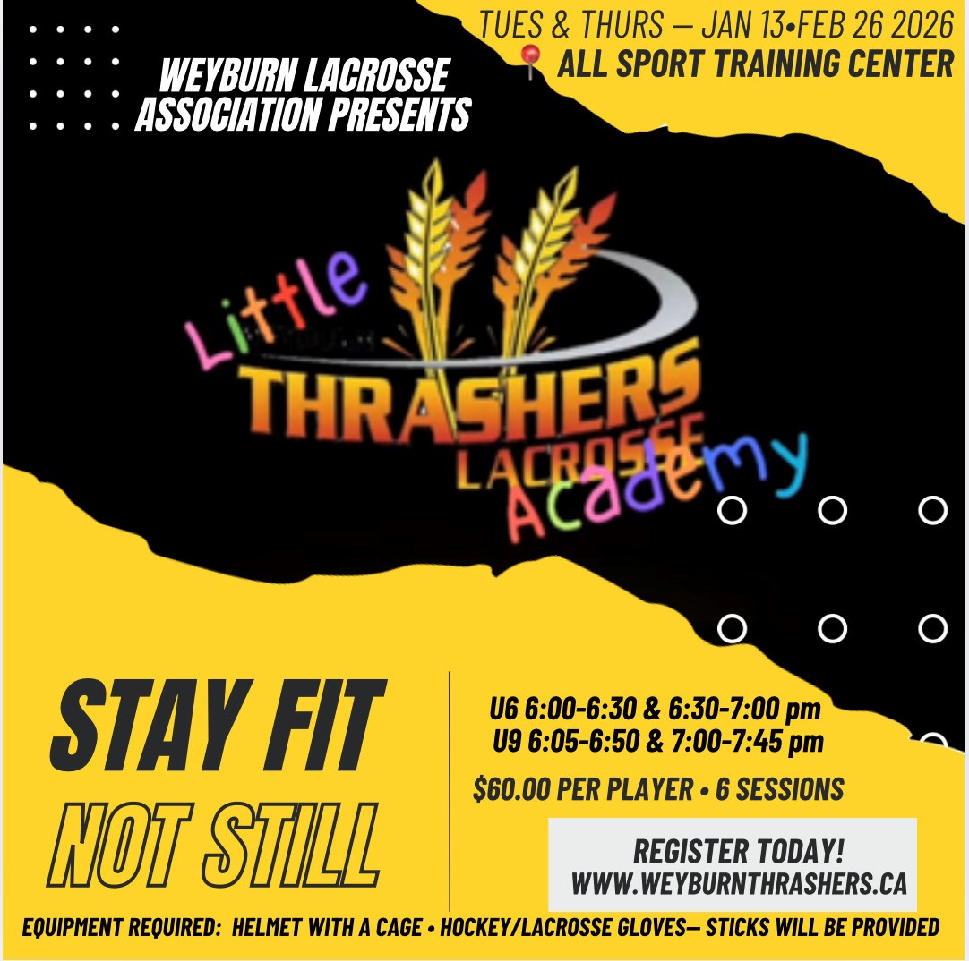 Greetings Weyburn Thrasher Families!! The Weyburn Lacrosse Association is excited to announce that Registration for the 2026 Thrasher’s Box Lacrosse Season will be open January 11, 2026!!!